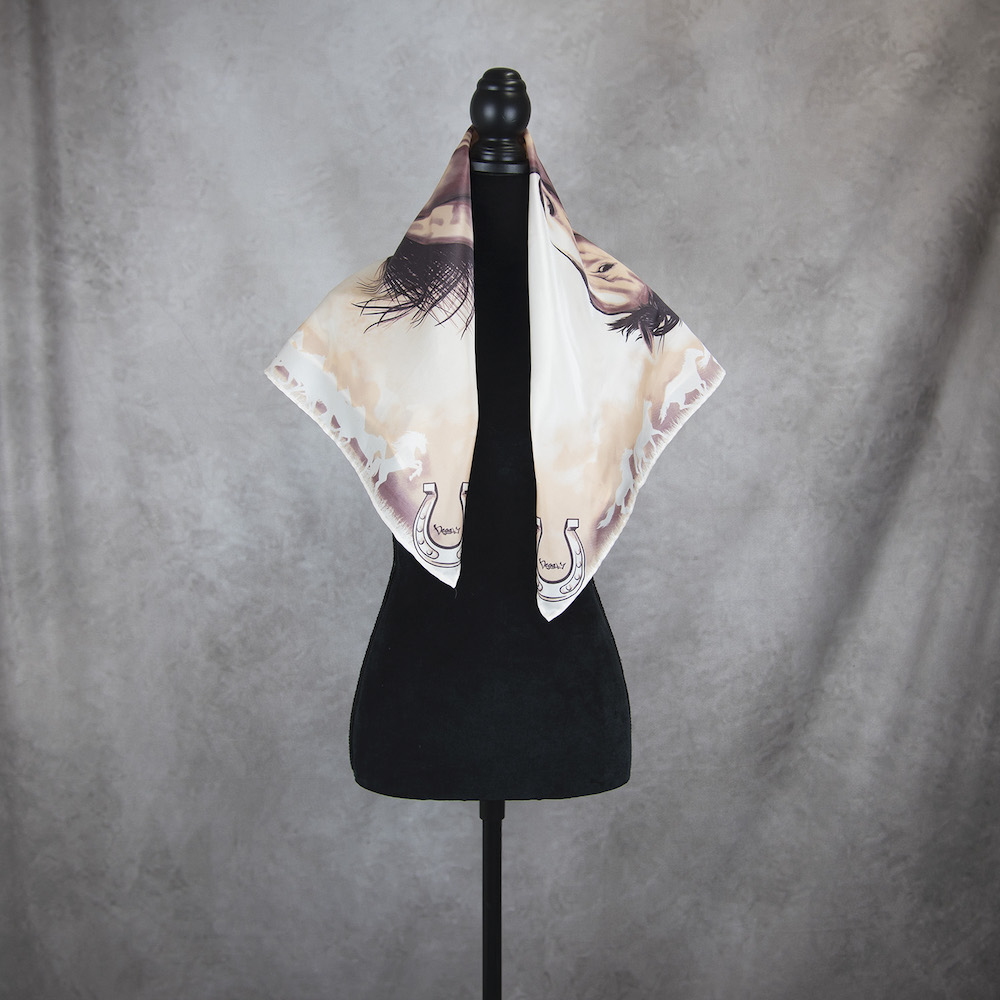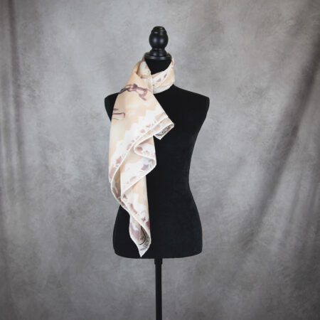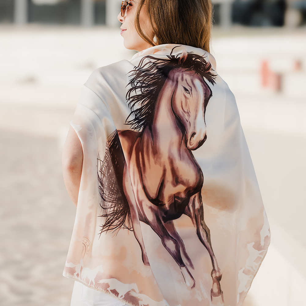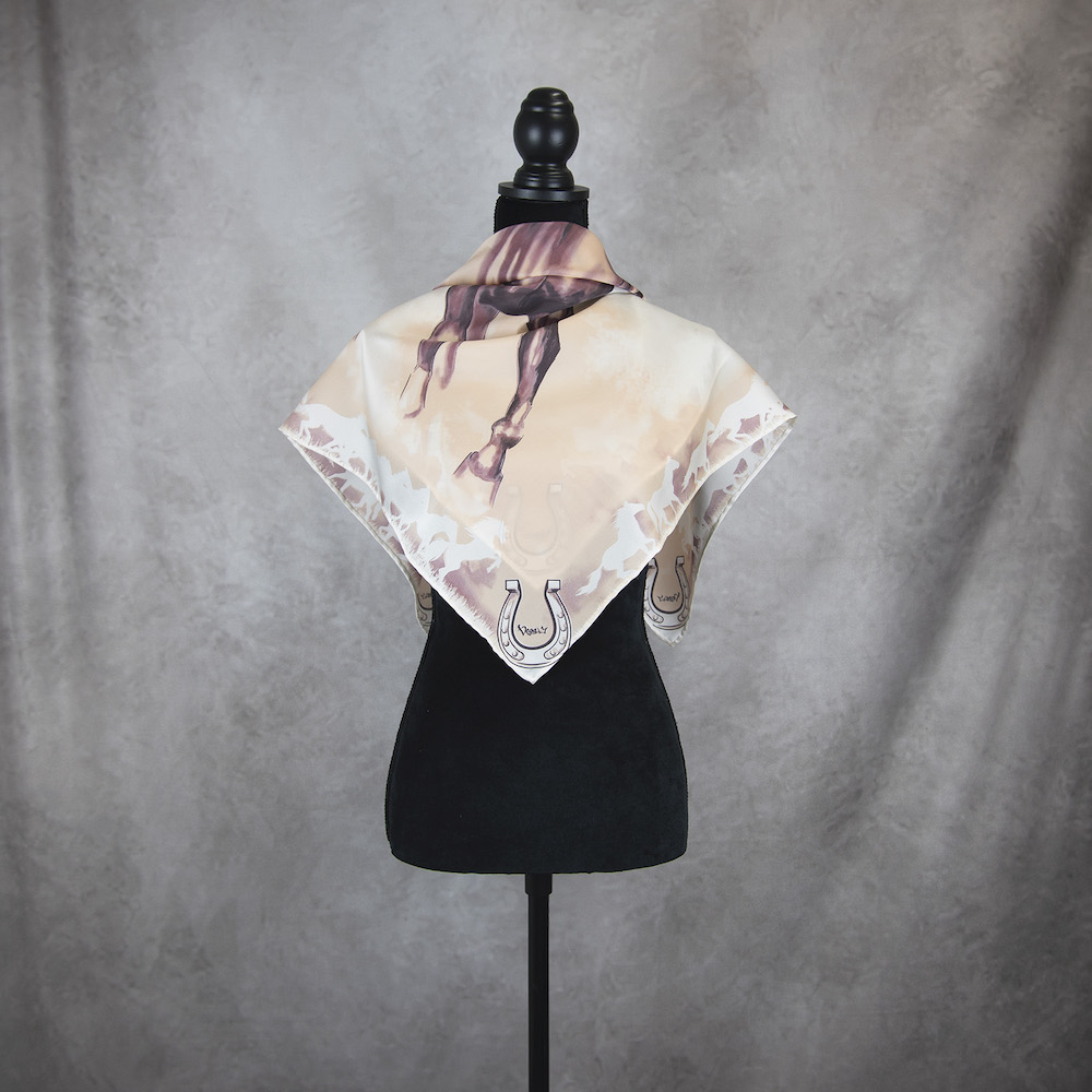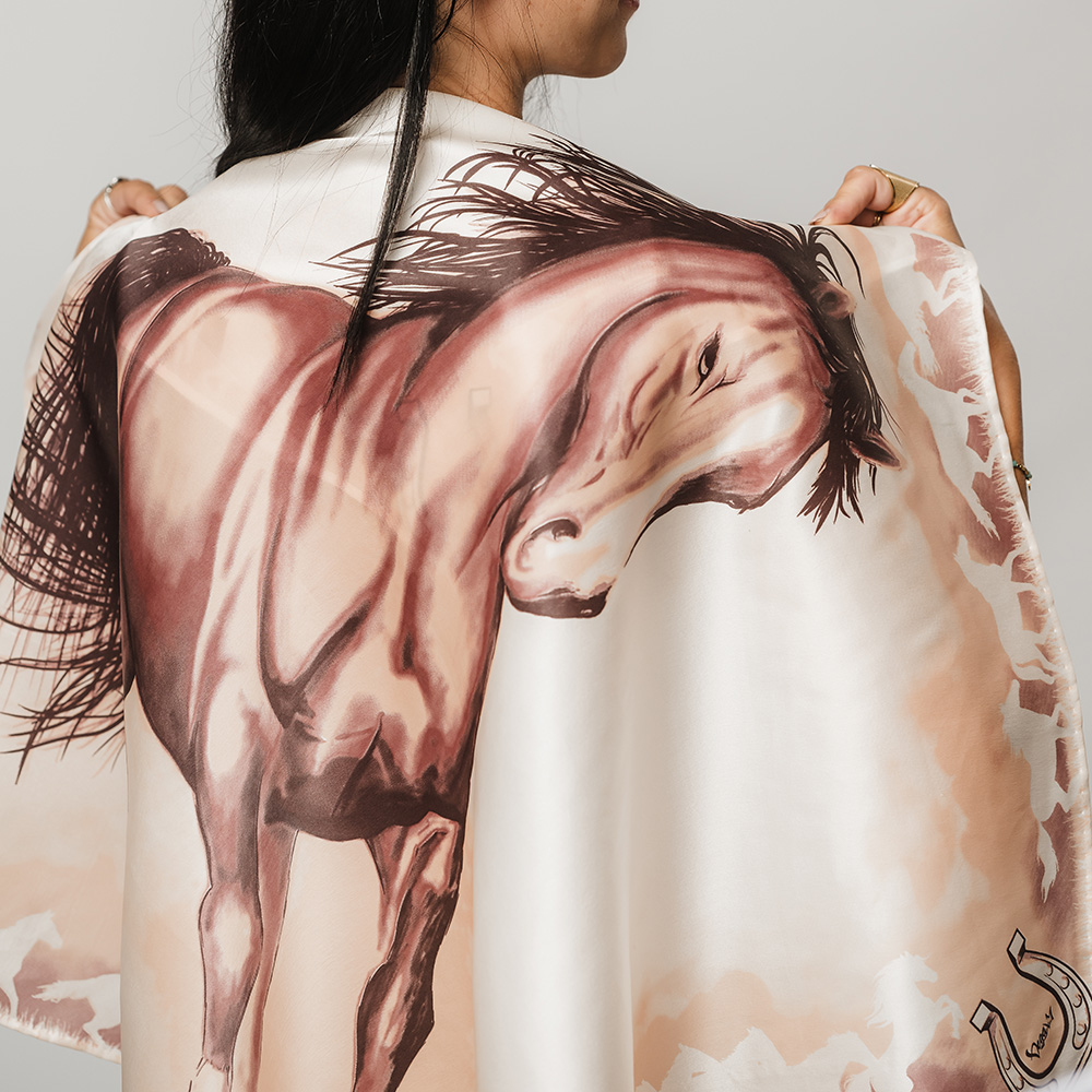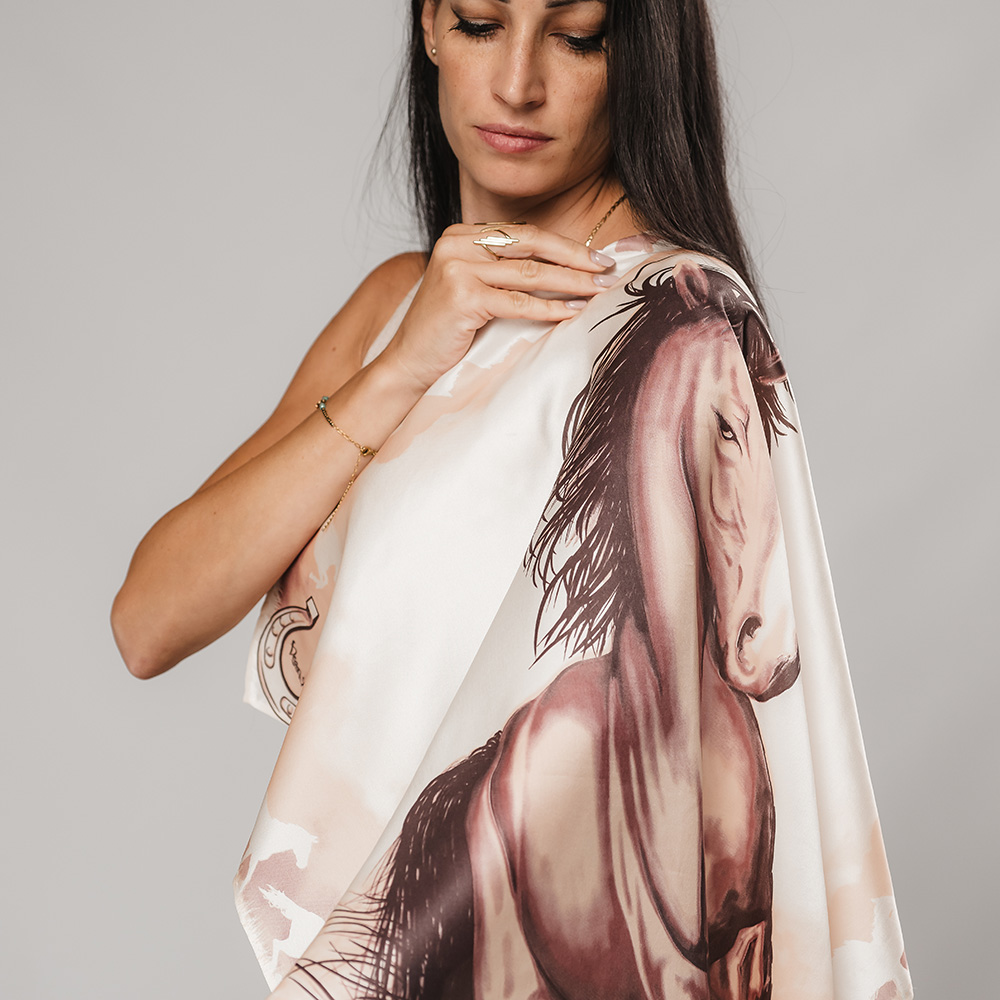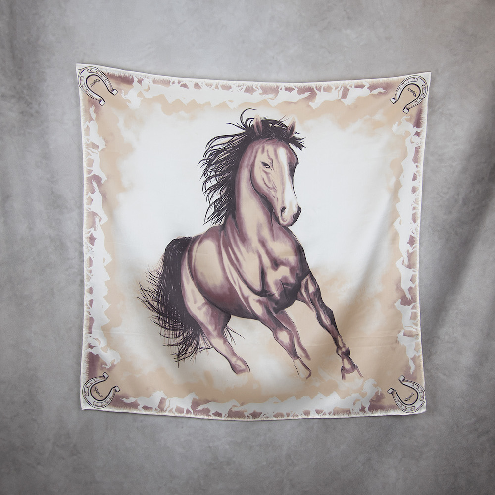 Handmade hodvábna šatka Kôň – sépia, Vyrobená na Slovensku, 90 x 90cm